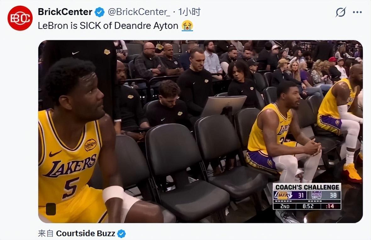 湖人输给国王遭遇三连败之后,球队的氛围很显然出现了严重的问题。对手是西部倒数第一,本赛季只有过一次两连胜,结果连这种队伍都打不过,那还有什么可说的?更重要的是,现在湖人队内已经有人引起了詹姆斯的严重不满,那就是艾顿,詹姆斯在湖人的板凳席当中,多次斜眼瞥艾顿,死亡凝视他,心里的不爽是肉眼可见的。