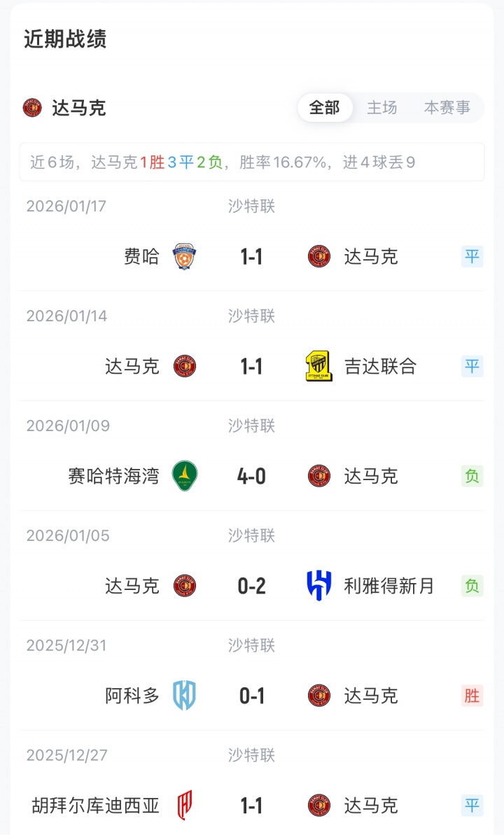1月22日讯 沙特联第17轮,利雅得胜利客战达马克,赛前双方首发公布。